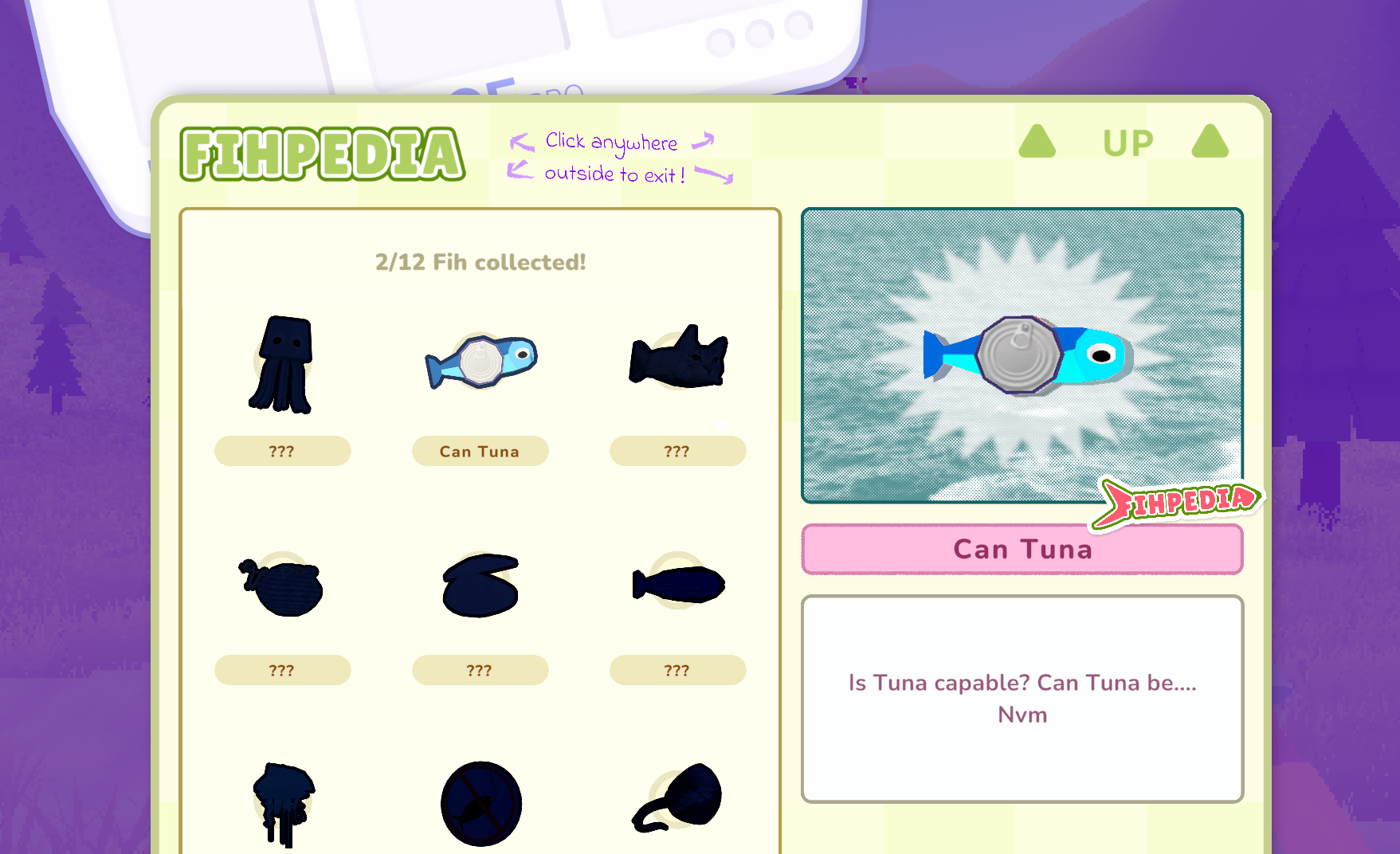 [CLICK AND DRAG] A UI element in your inventory can be click and drag to open your fish collection. It's like a Pokedex for your fish.